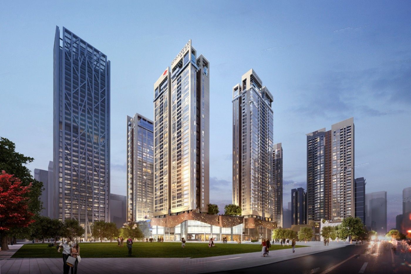 “深圳中心”项目位于福田CBD最核心的位置,由金地、大百汇、卓越共同出资开发,项目占地面积约22.3万㎡,总建筑面积约140万㎡,包含了约50万㎡豪华住宅及公寓;约20万㎡2栋超甲级写字楼;30万㎡都会商业;