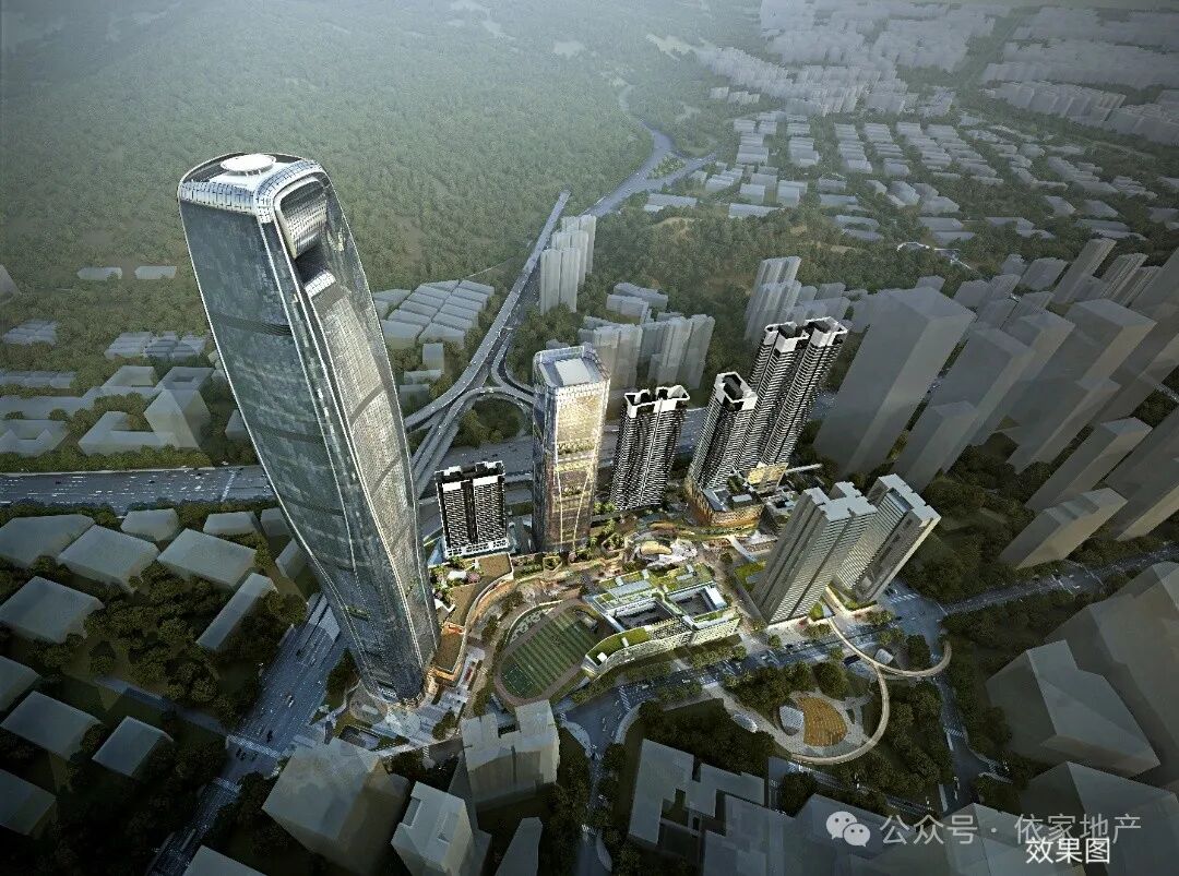 约63万㎡城建云投创新金融总部基地,以约380m地标云投大厦,勾绘城市天际风景线