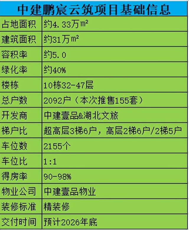 最新消息:中建鹏宸云筑加推6栋楼王单位,共计155套10-148㎡的大户型房源,2梯5户设计,精装交付,总层高32层。本周六开始登记,验资50万(股票,基金,理财,存款都行)
