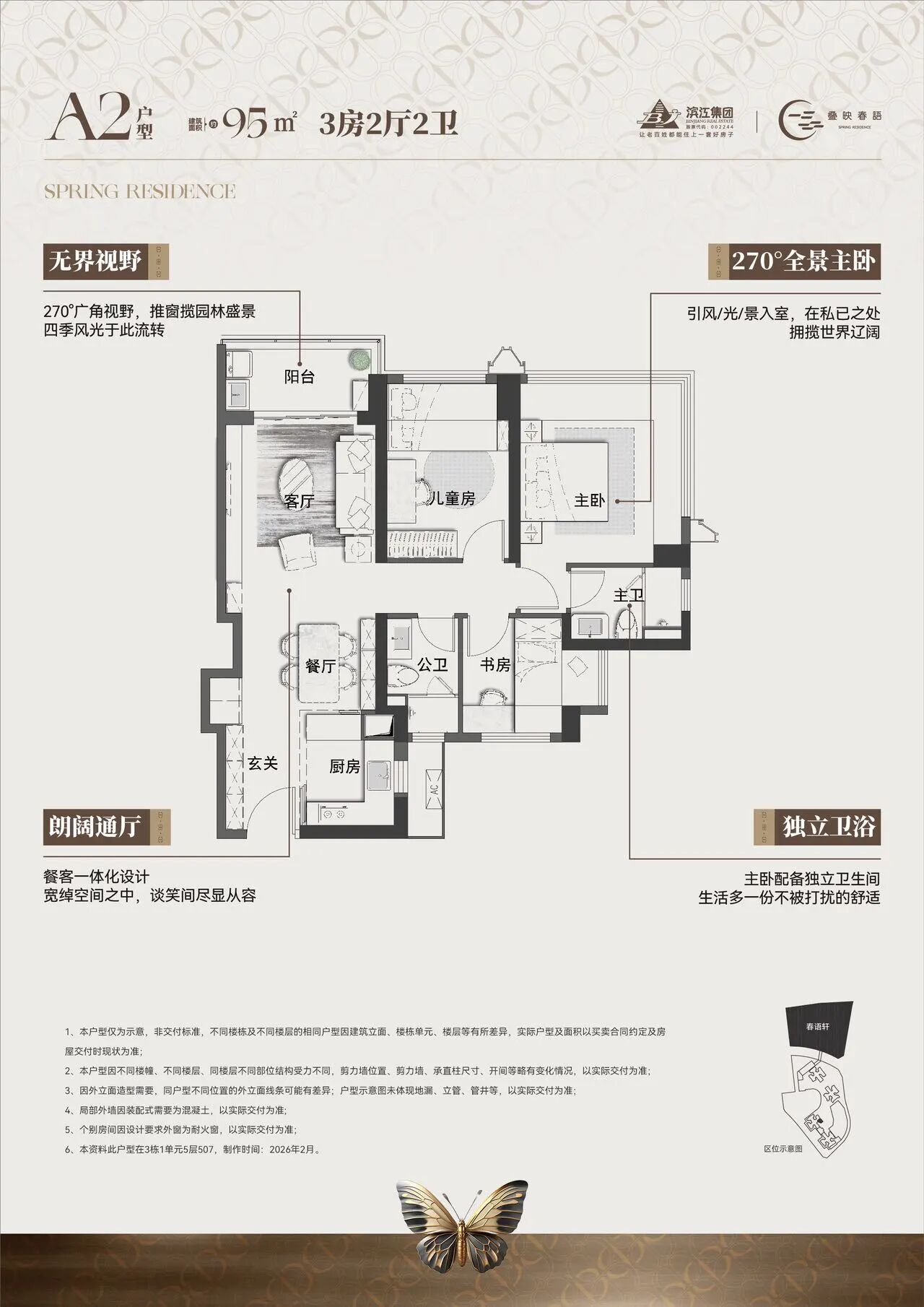 主力户型为70㎡2房、85-95㎡3房、117㎡4房,全部采用建筑新规设计,得房率(含赠送)可达98%。