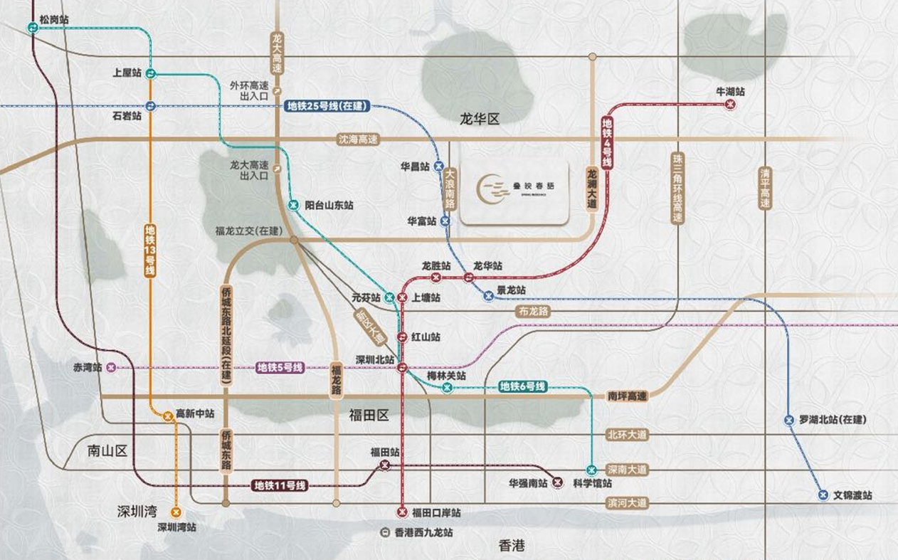 交通配套:地铁约600米地铁25号线华富站(建设中),无缝换乘4/6/13号线畅达全城,城际 深大城际(建设中)。