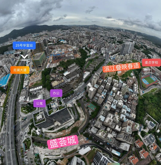 目前周边环境比较一般,主要是城中村为主,这个也是大浪当下所有楼盘都存在的局面!旁边是早期卖完的盛荟城,距离地铁25号线华富站比较远约1公里左右。