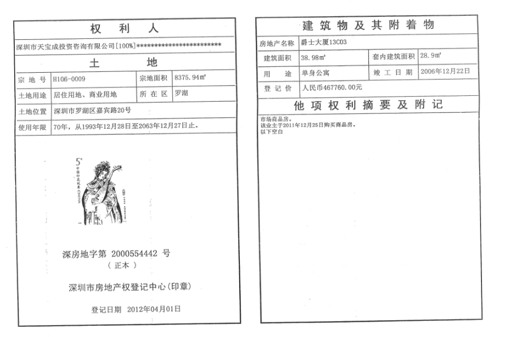 - 深房地字第2000554442号 2012-04-01