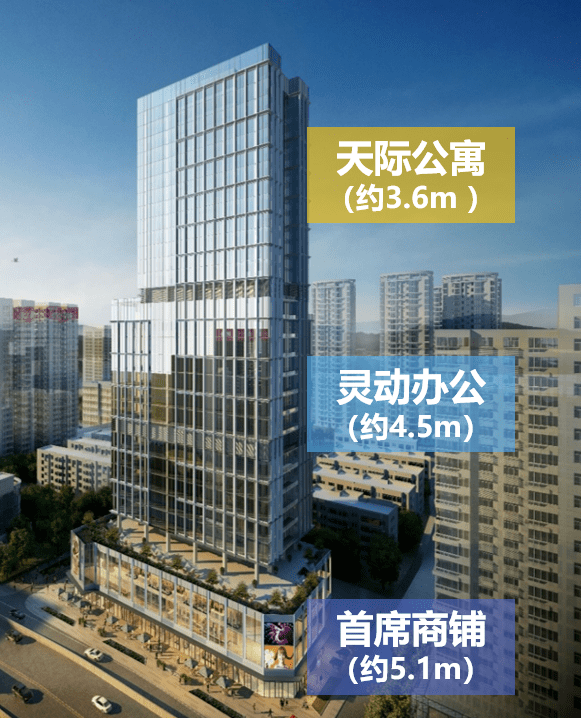 【层高】公寓3.6m/办公4.5m/商铺5.1m